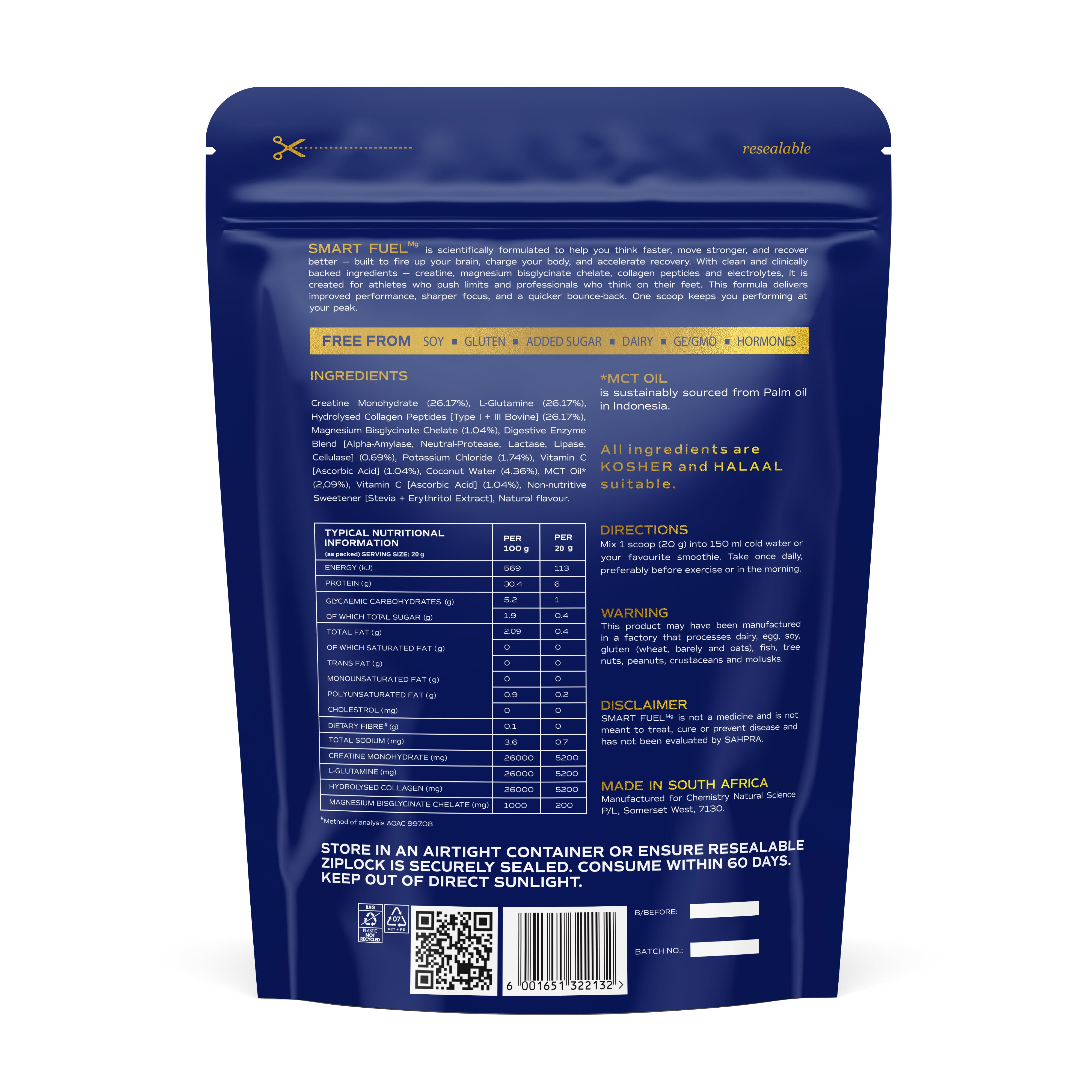 - Mix 20 g SMART FUELmg into cold water before or after training, or whenever you need clean energy and recovery support.